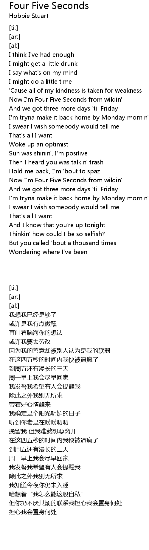 Now I'm Four Five Seconds from wildin' |