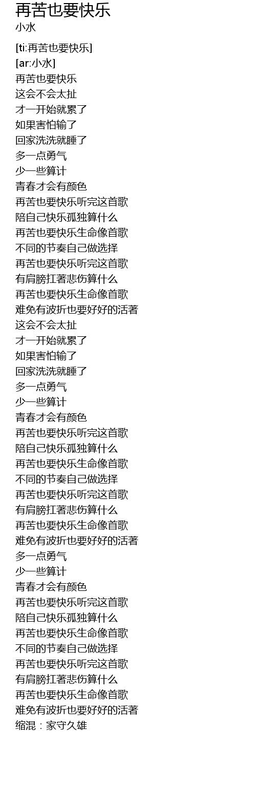 | [02:33.368] | 再苦也要快乐听完这首歌 |