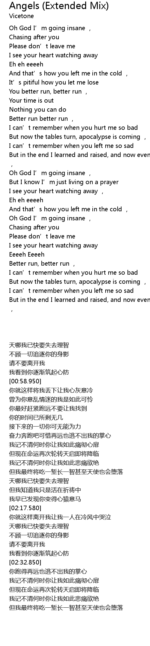 | [02:48.970] | But in the end I learned and raised, and now even Angels could be bad , |