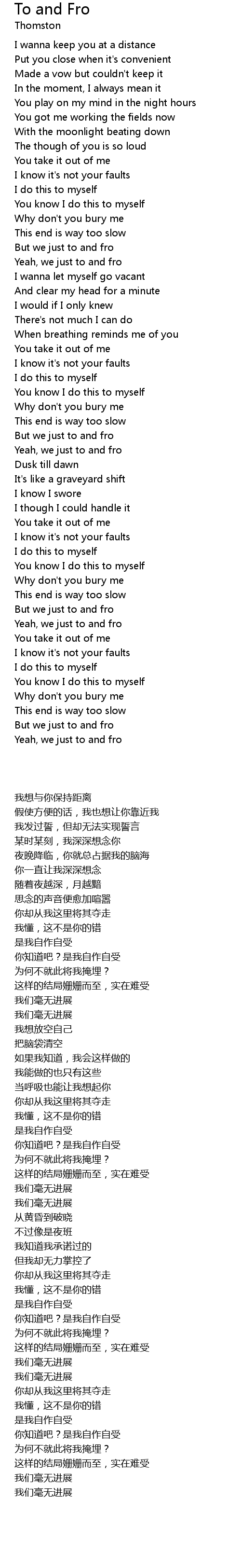 | [00:51.87] | Yeah, we just to and fro |