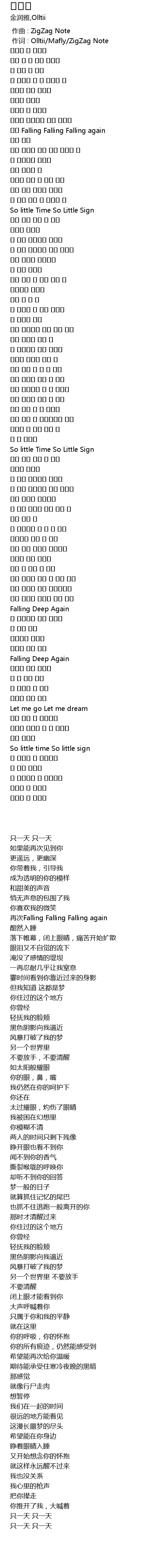 | [00:01.00] | zuo ci : Olltii Mafly ZigZag Note |