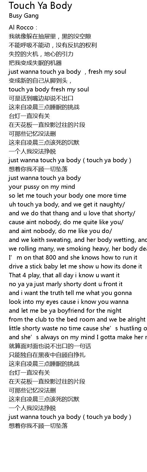 | [01:01.25] | just wanna touch ya body touch ya body |