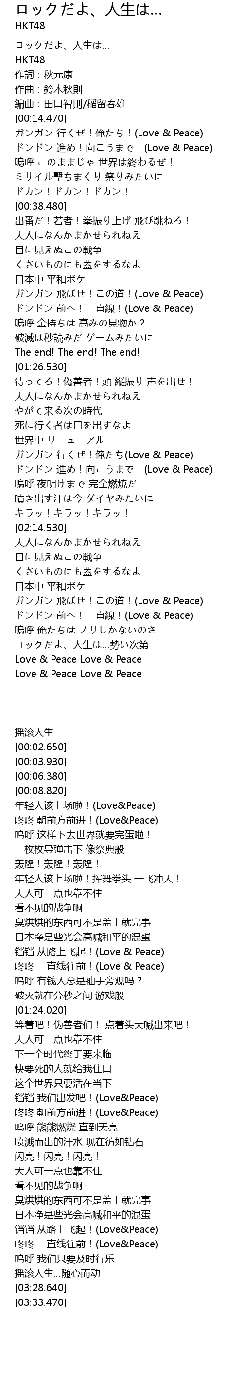 | [03:33.470] | Love & Peace Love & Peace |