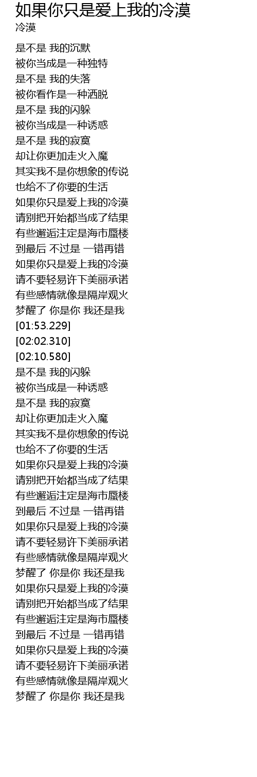 | [02:43.850] | 如果你只是爱上我的冷漠 |