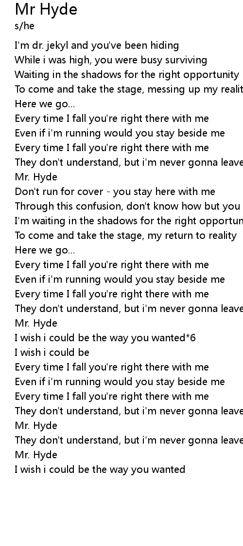 | [00:11.66] | I'm dr. jekyl and you've been hiding |