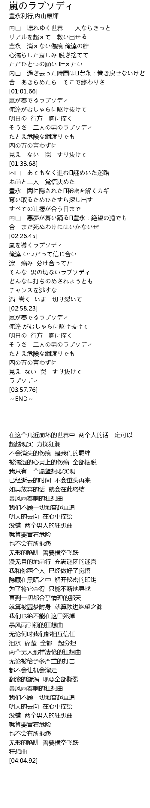 | [03:17.70] | 嵐が奏でるラプソディ |