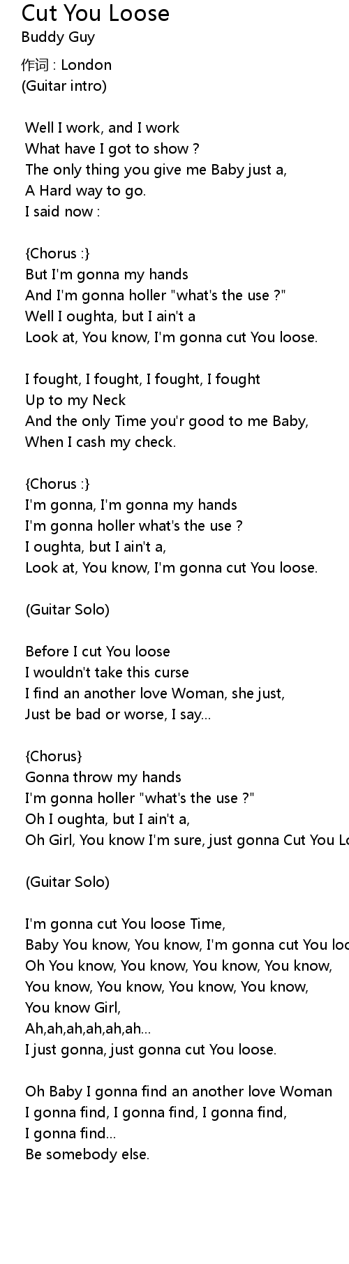 | Oh Girl, You know I'm sure, just gonna Cut You Loose. | |