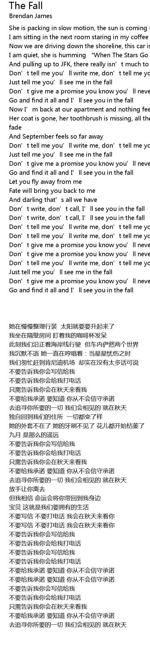 | [02:19.940] | Just tell me you' ll see me in the fall |