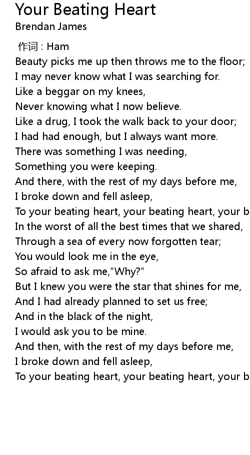 | [02:44.80] | To your beating heart, your beating heart, your beating heart. |