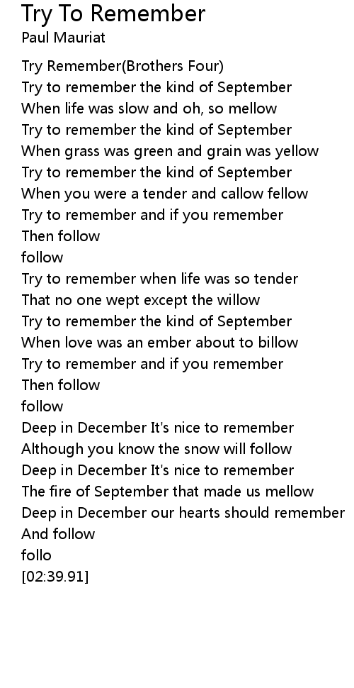 Try To Remember Lyrics