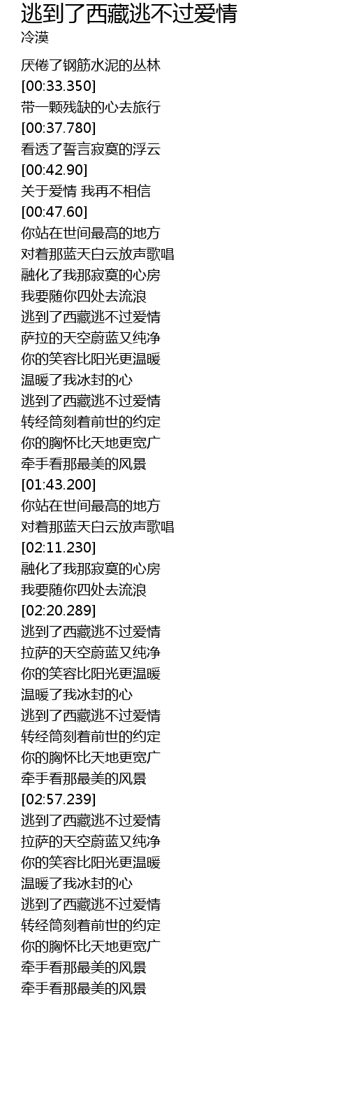 | [02:39.209] | 逃到了西藏逃不过爱情 |