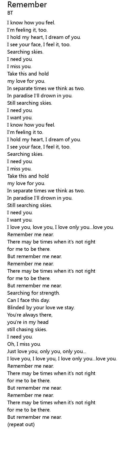 | Remember me near. | |