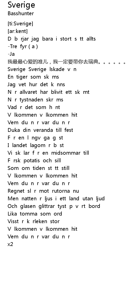 | [00:05.230] | 我最最心爱的准儿,我一定要带你去瑞典。。。。。。 |