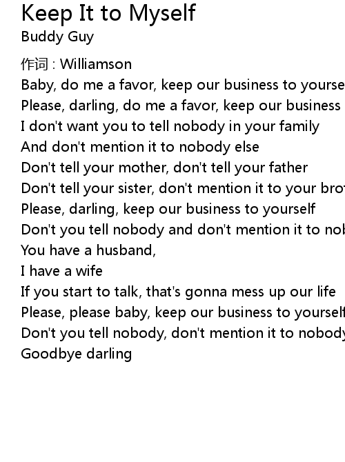 | Baby, do me a favor, keep our business to yourself | |