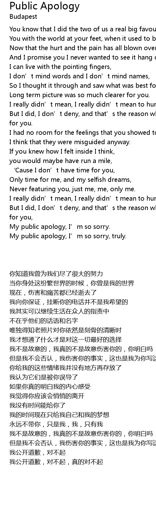 | [03:45.20] | My public apology, I' m so sorry, truly. |