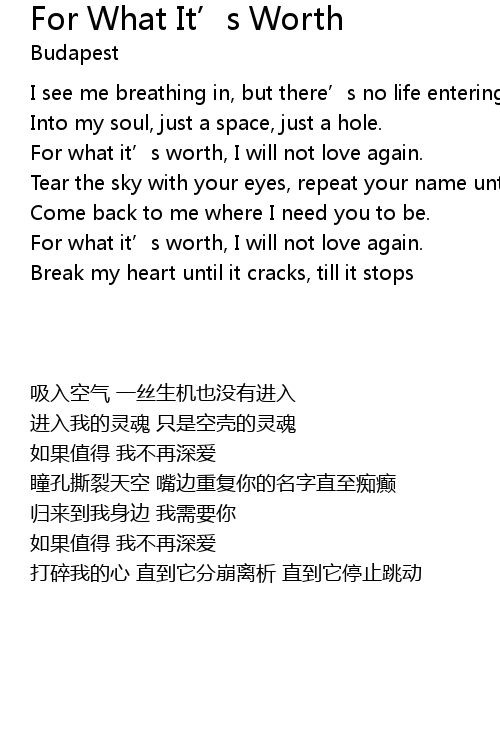 | [01:48.93] | For what it' s worth, I will not love again. |