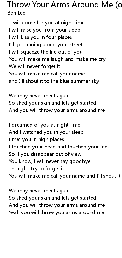 Yeah you will throw you arms around me |