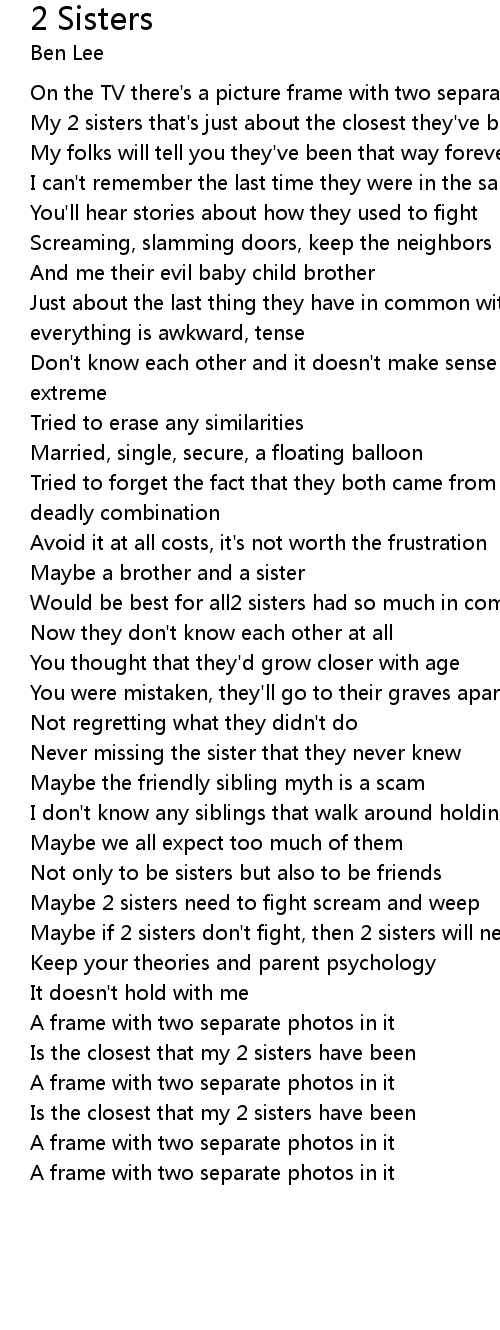 Maybe if 2 sisters don't fight, then 2 sisters will never speak |