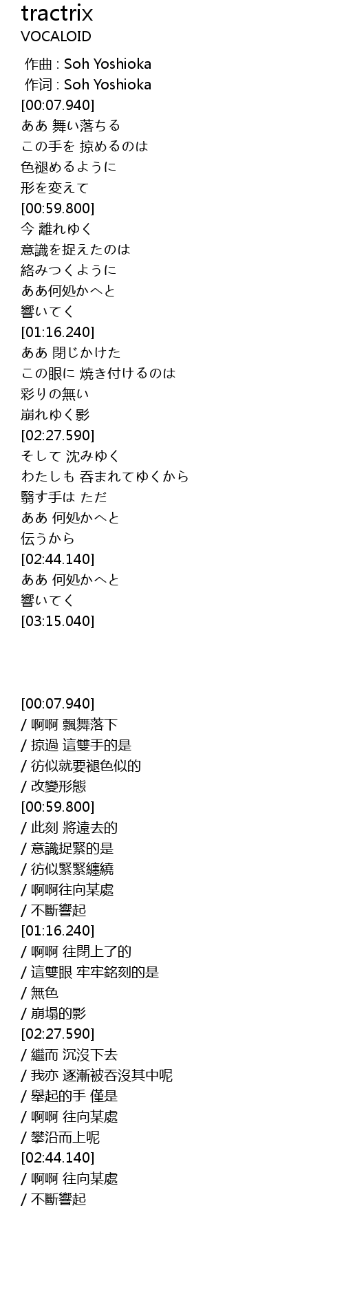 | [00:00.00] | zuo qu : Soh Yoshioka |