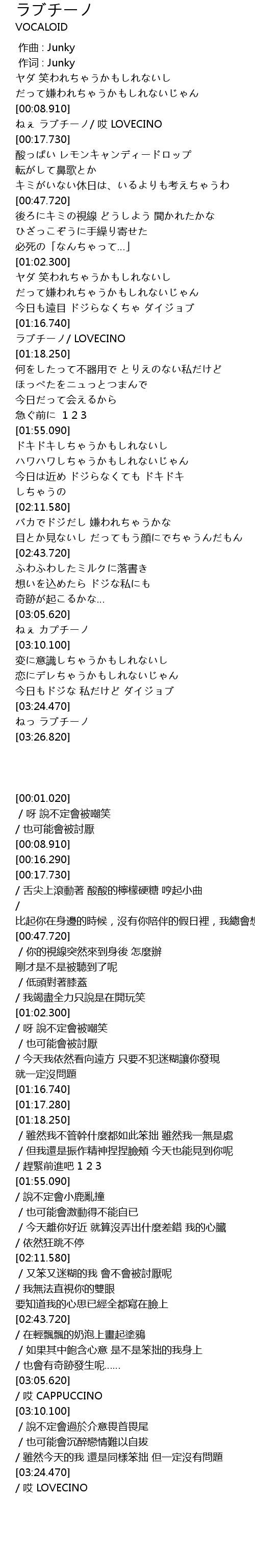 | [01:17.280] | ラブチーノ/ LOVECINO |