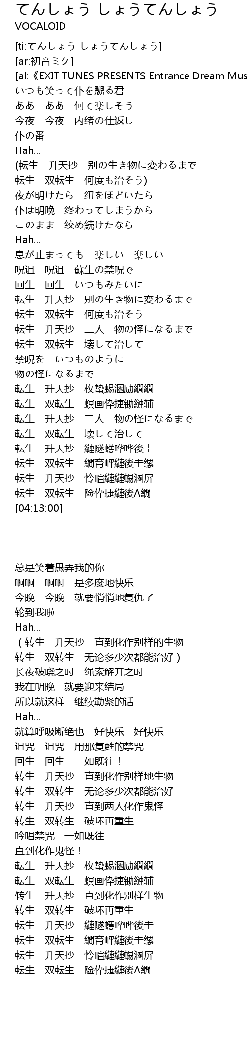| [02:44:60] | zhuǎn shēng shēng tiān chāo èr rén wù guài |