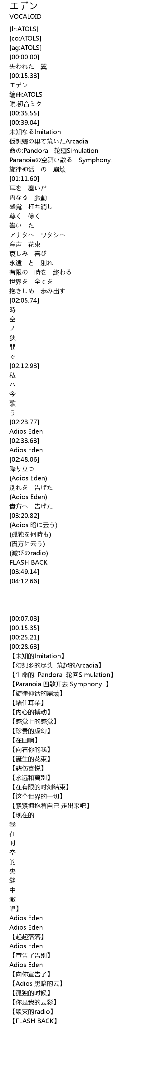 | [00:44.79] | 仮想郷の果て筑いたArcadia |