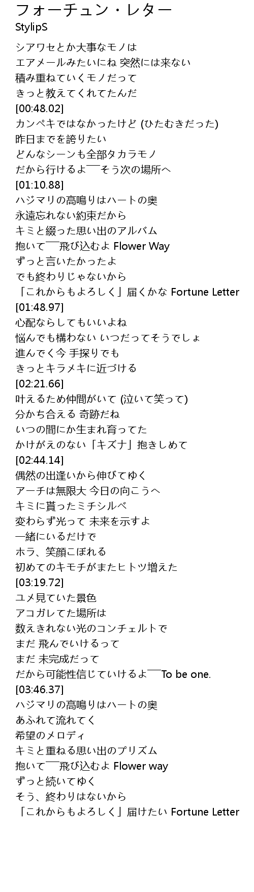 | [01:40.77] | 「これからもよろしく」届くかな Fortune Letter |