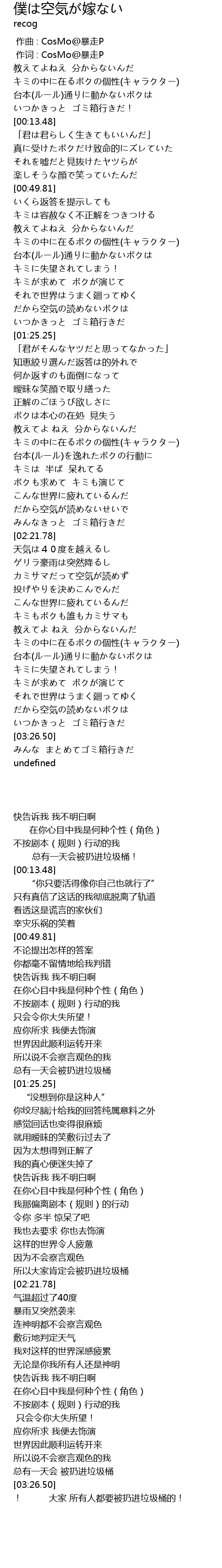 | [02:50.88] | カミサマだって空気が読めず |