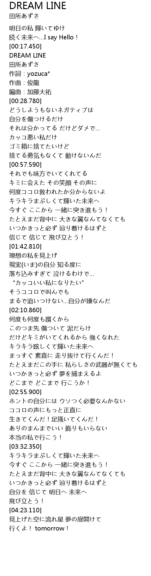 | [03:50.720] | キラキラまぶしくて輝いた未来へ |