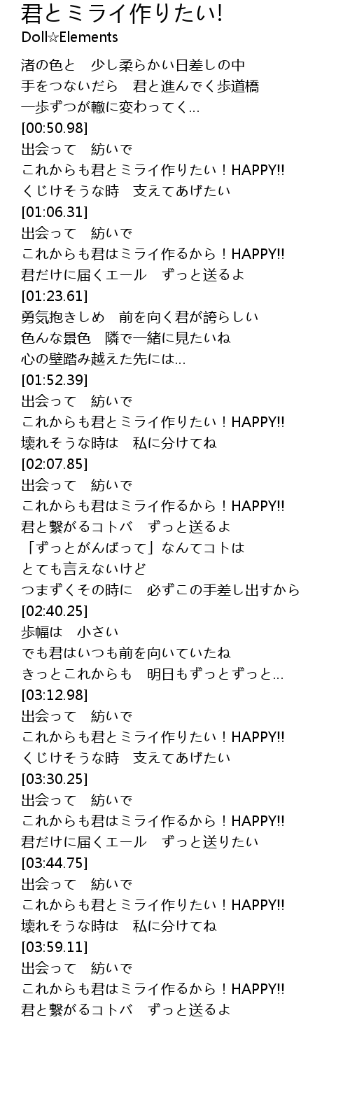 | [00:53.84] | これからも君とミライ作りたい!HAPPY!! |