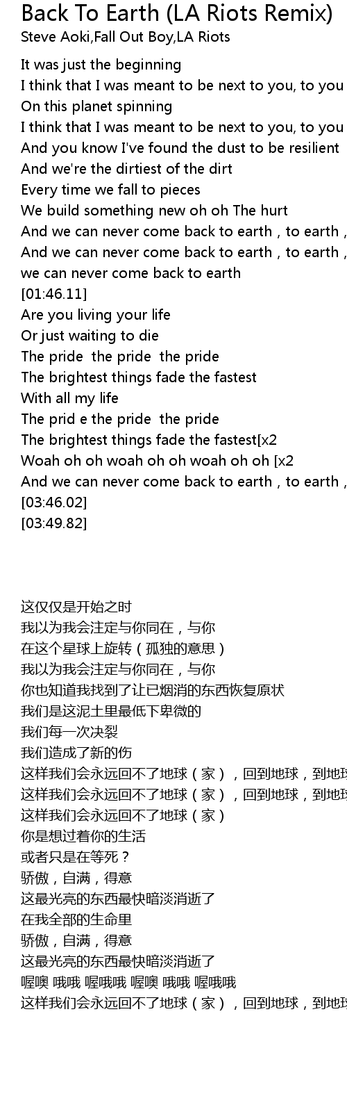 | [03:02.69] | And we can never come back to earth, to earth, to earth... X4 |