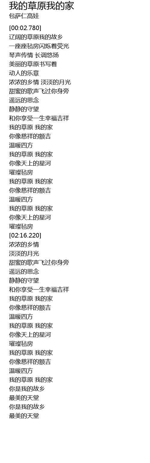 | [00:21.040] | 辽阔的草原我的故乡 |