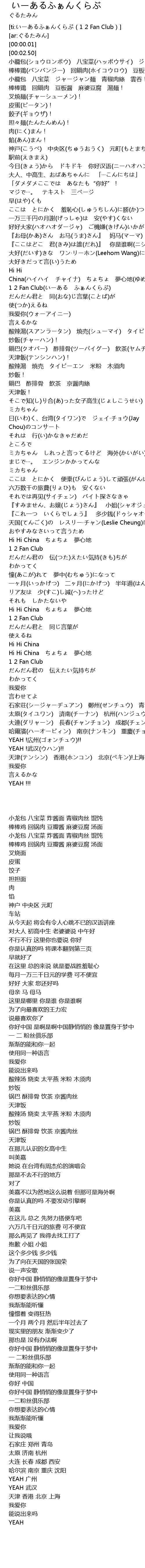 [03:38.54] YEAH !広州(ゴォンチュウ)!!