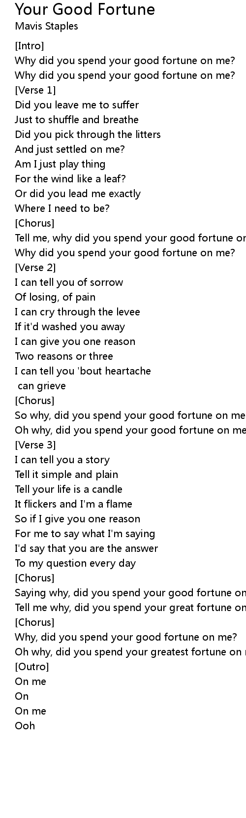 Oh why, did you spend your good fortune on me? |