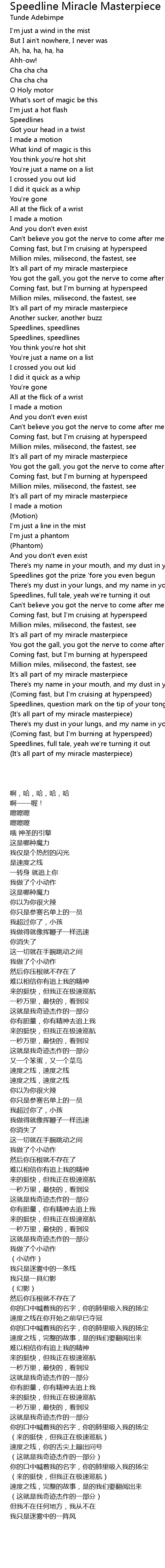 (Coming fast, but I'm cruising at hyperspeed) |