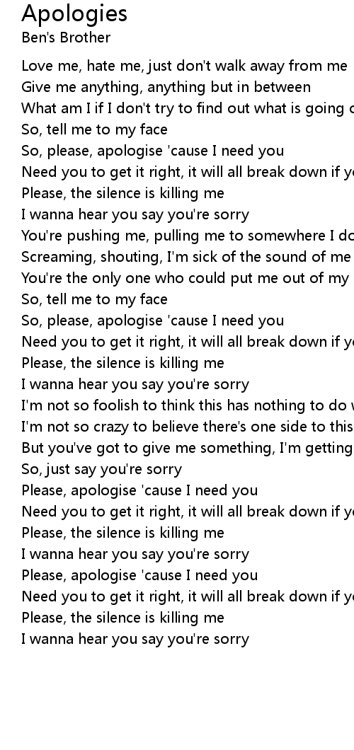 So, please, apologise 'cause I need you |
