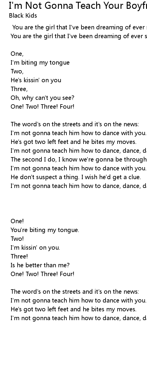 I'm not gonna teach him how to dance, dance, dance, dance |