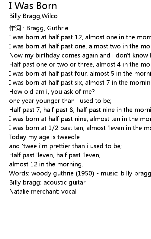 | 作词 : Bragg, Guthrie | |