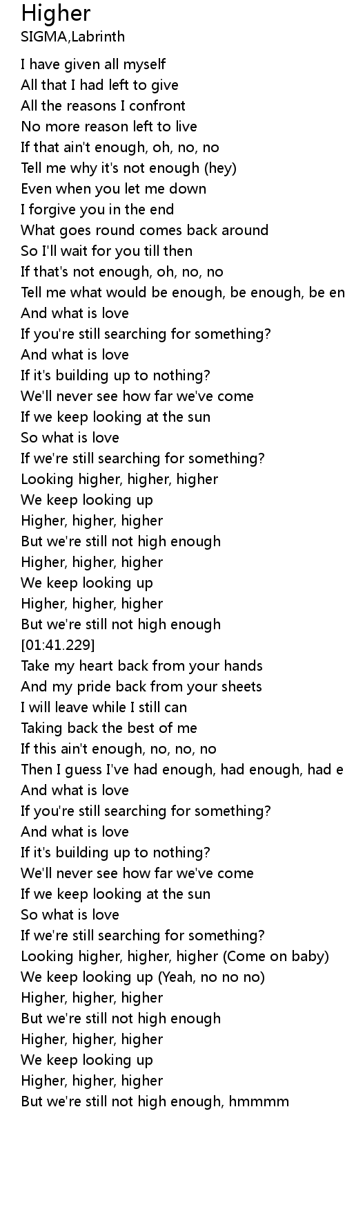 | [01:23.913] | Higher, higher, higher |