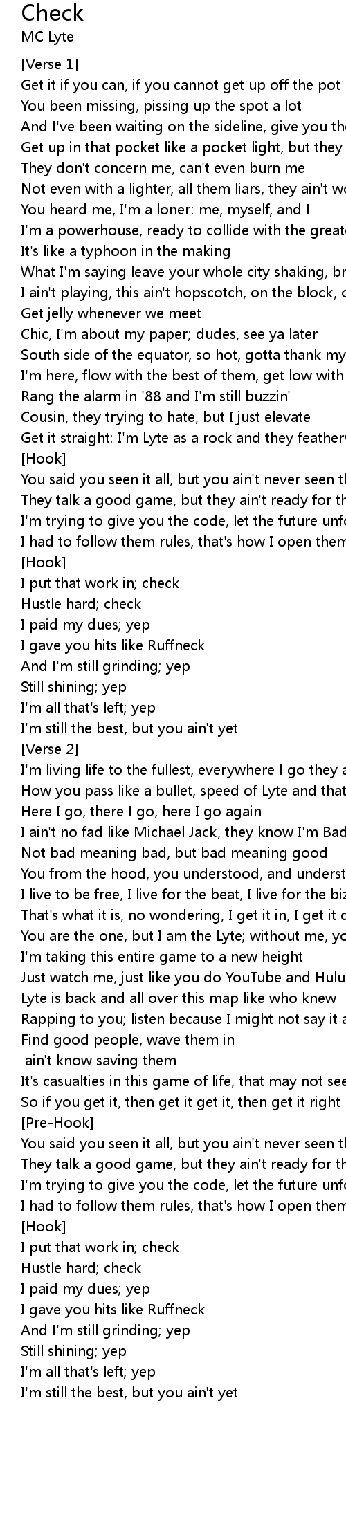 | You are the one, but I am the Lyte; without me, you're out of sight | |