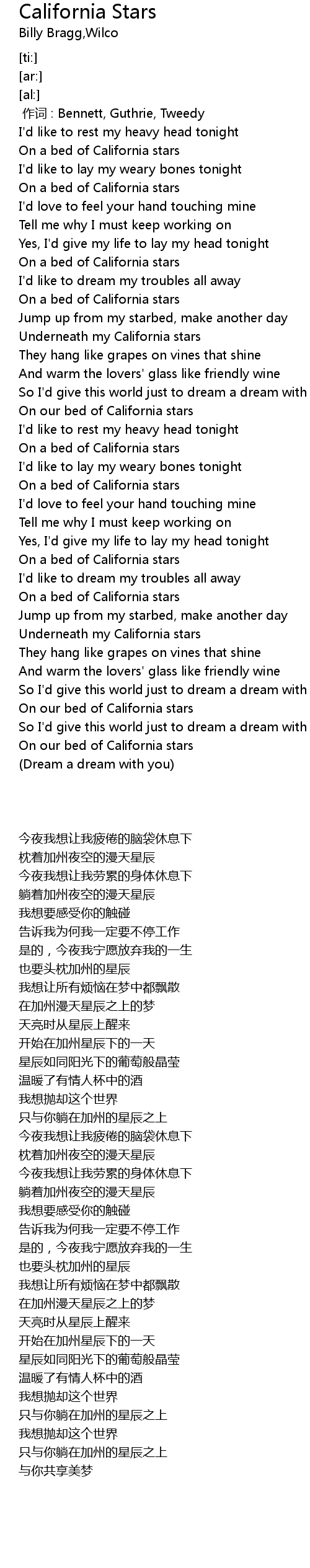 | [00:00.00] | 作词 : Bennett, Guthrie, Tweedy |