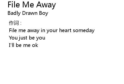 | [02:10.66] | File me away in your heart someday |