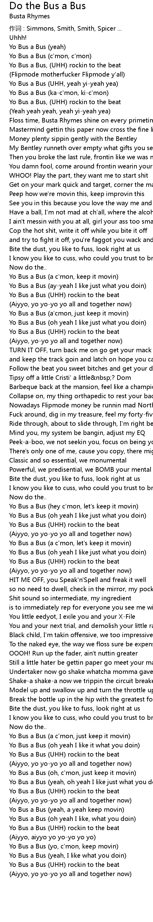 | Yo Bus a Bus (hey c'mon, let's keep it movin) | |