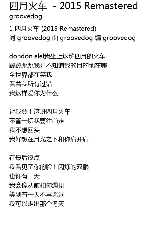 | dondon elel wǒ zuò shàng zhè tàng sì yuè de huǒ chē | |