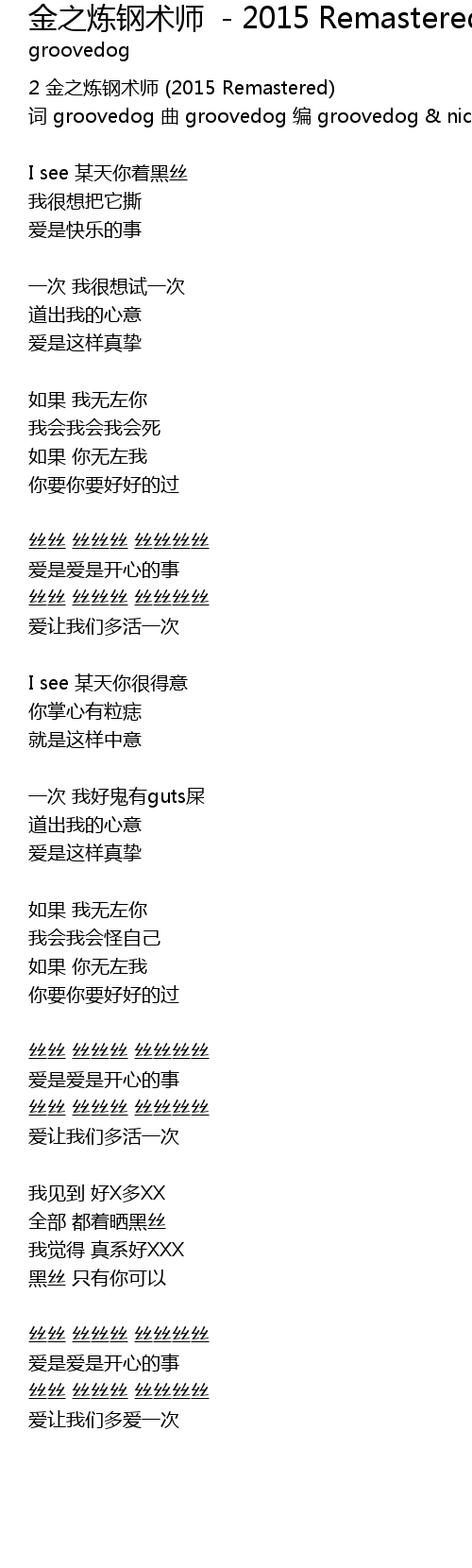 | 词 groovedog 曲 groovedog 编 groovedog & nickyouth | |