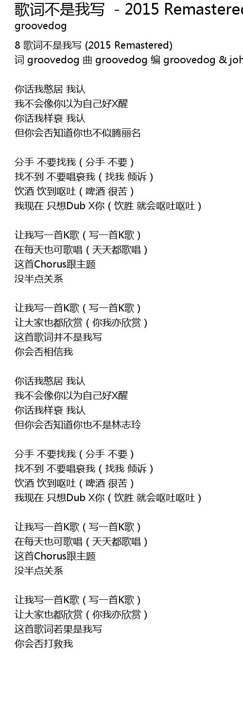 | 词 groovedog 曲 groovedog 编 groovedog & johnlam | |