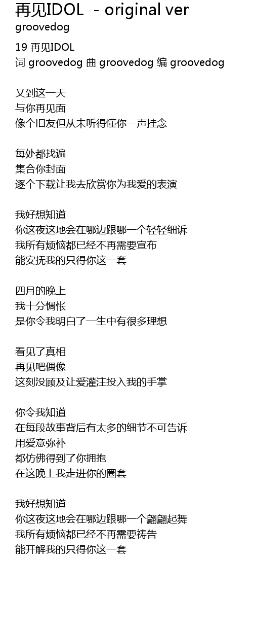 | 词 groovedog 曲 groovedog 编 groovedog | |