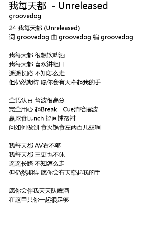 | 词 groovedog 曲 groovedog 编 groovedog | |