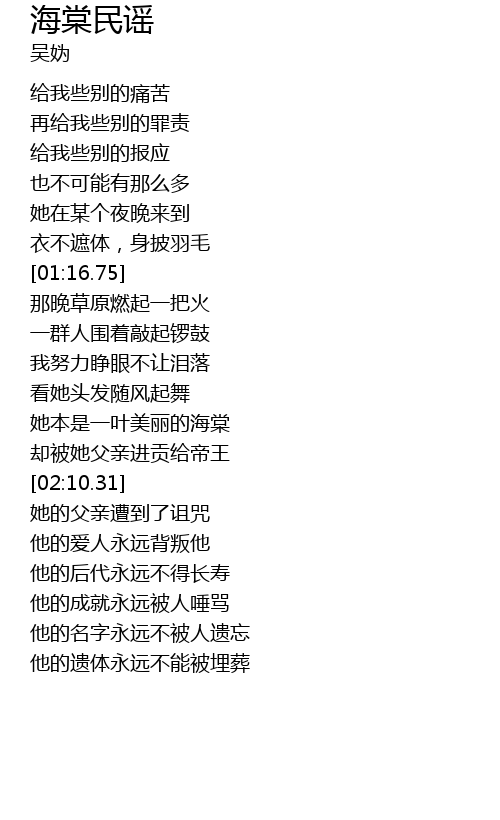 | [01:50.37] | 她本是一叶美丽的海棠 |