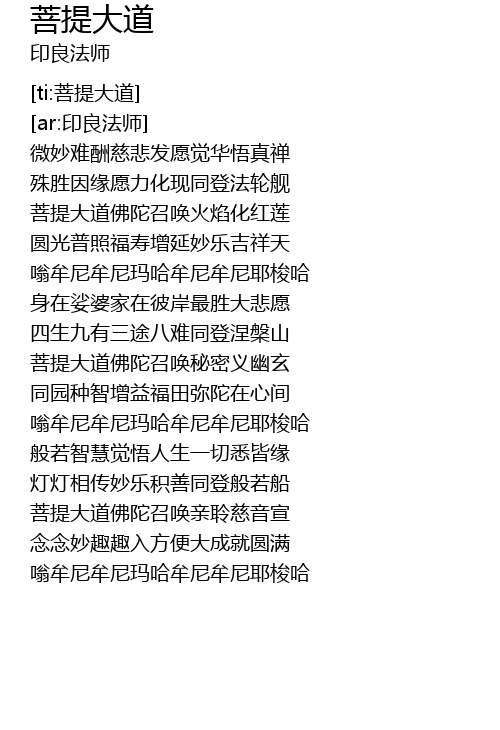| [02:14.175] | 菩提大道佛陀召唤秘密义幽玄 |